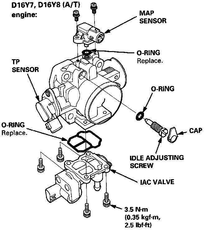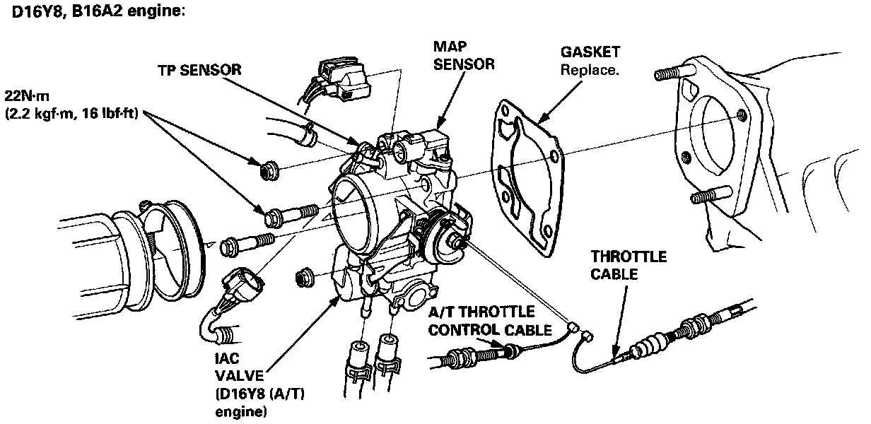 After reassembly, adjust the throttle cable, and A/T throttle control cable for cars with A/T.