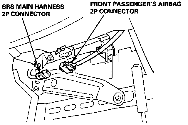 Disconnect the 2P connector between the front passenger's airbag and SRS main harness.
