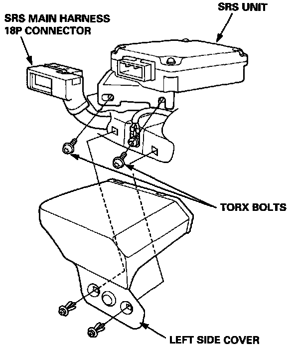5. Remove the left side cover from the SRS unit, then disconnect the SRS main harness 18P connector from the SRS unit.