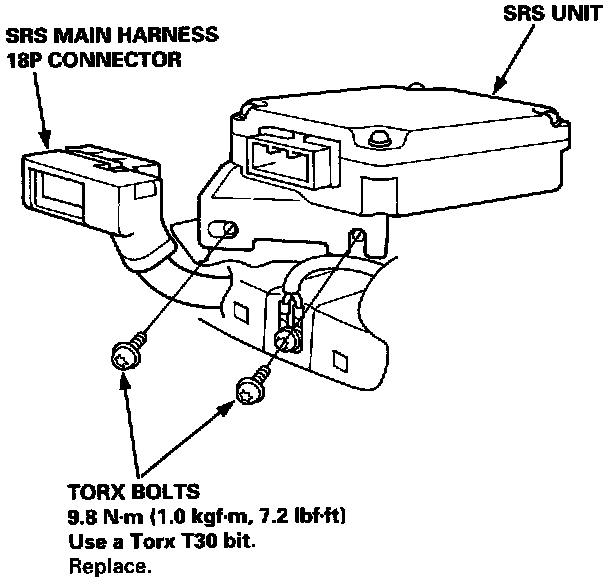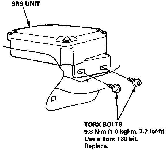6. Remove the Torx bolts from the SRS unit, then pull out the SRS unit from the passenger 5 side.