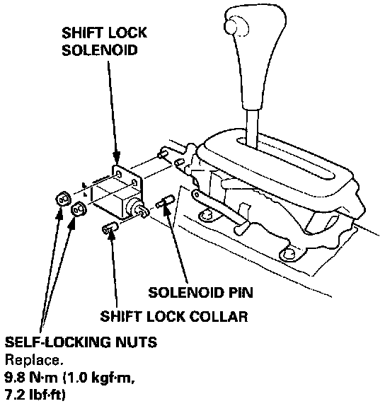 4. Remove the self-locking nuts and shift lock solenoid, then install the new solenoid in the reverse order of removal.