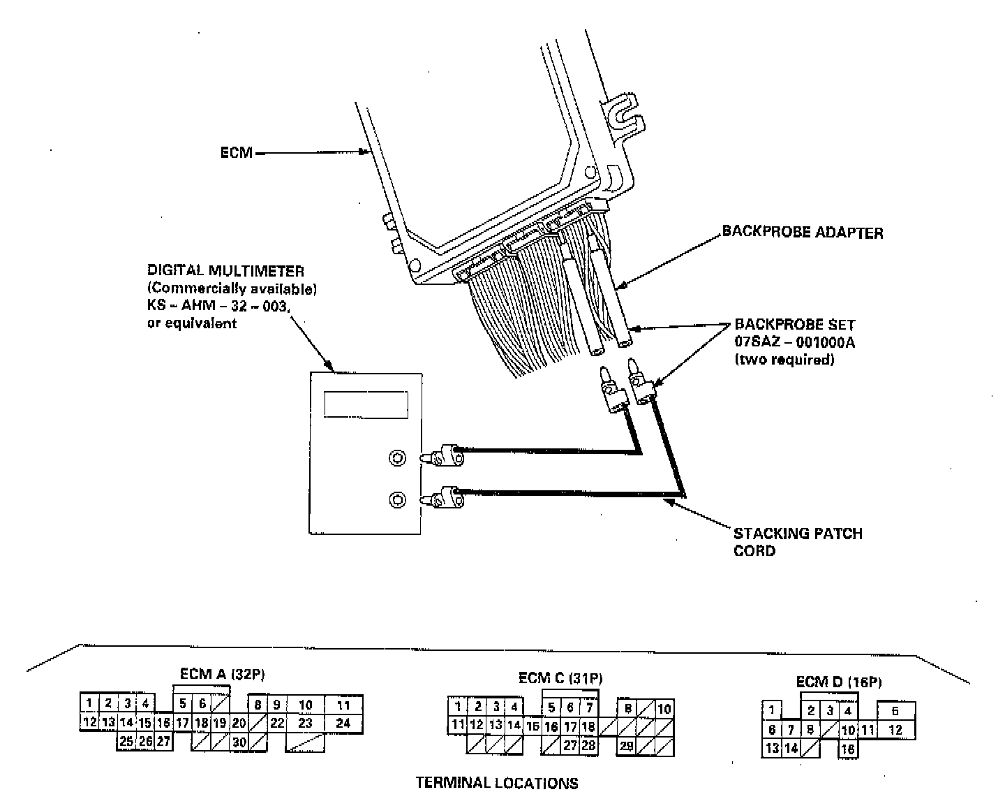 b. Set the digital multimeter to check voltage between D1 (+) terminal and D11 (-) terminal for the throttle position sensor.