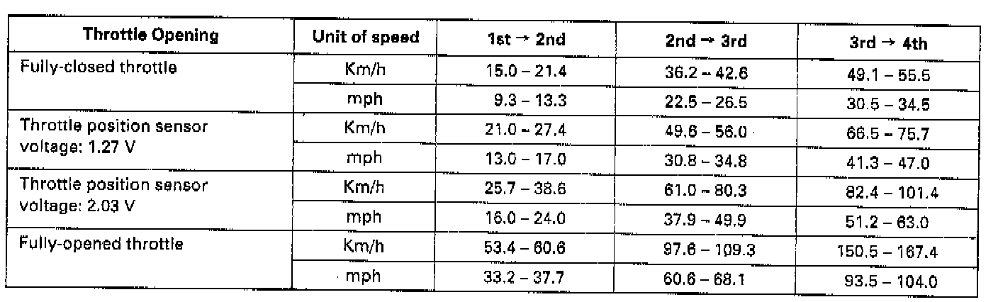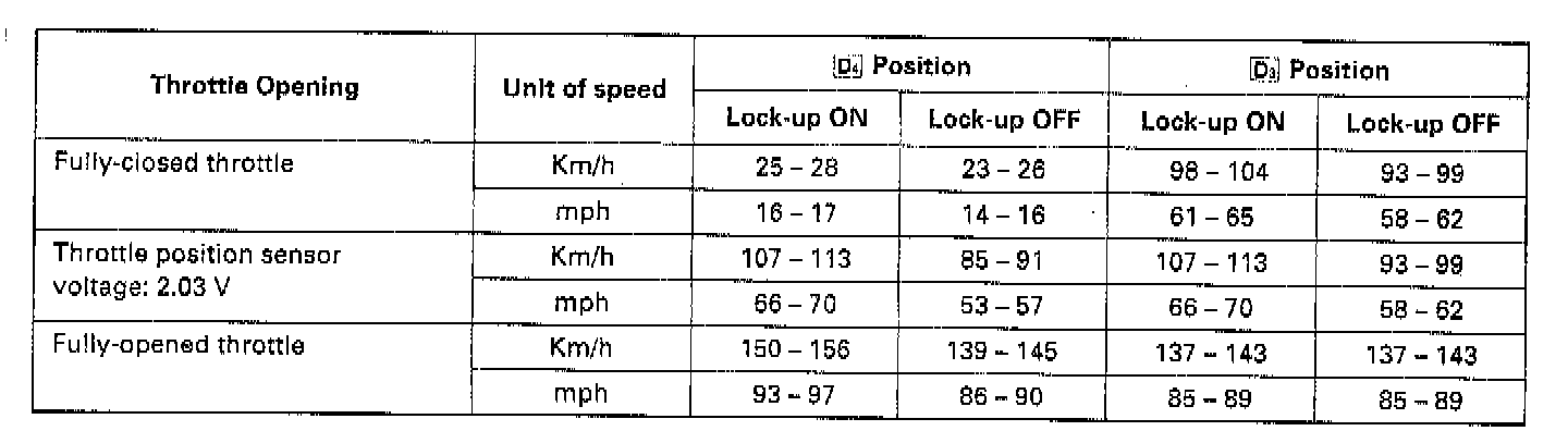 3. Test-drive the car on a flat road in the HI position. Check that the shift points occur at approximate speeds shown. Also check for abnormal noise and clutch slippage.