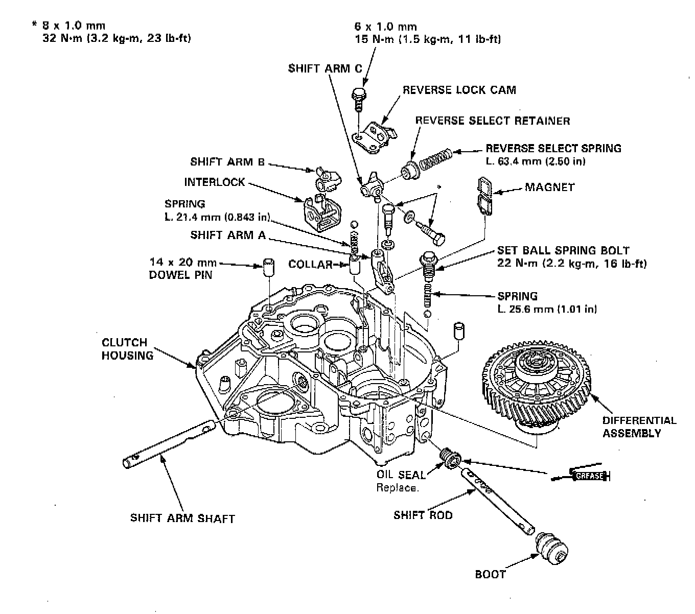 5. Install shift arm B in the interlock, then set it on the clutch housing.