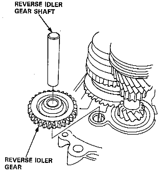 15. Install the reverse idler gear and reverse idler gear shaft.