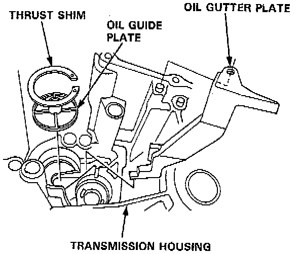 18. Install the oil guide plate and thrust shim on the transmission housing.