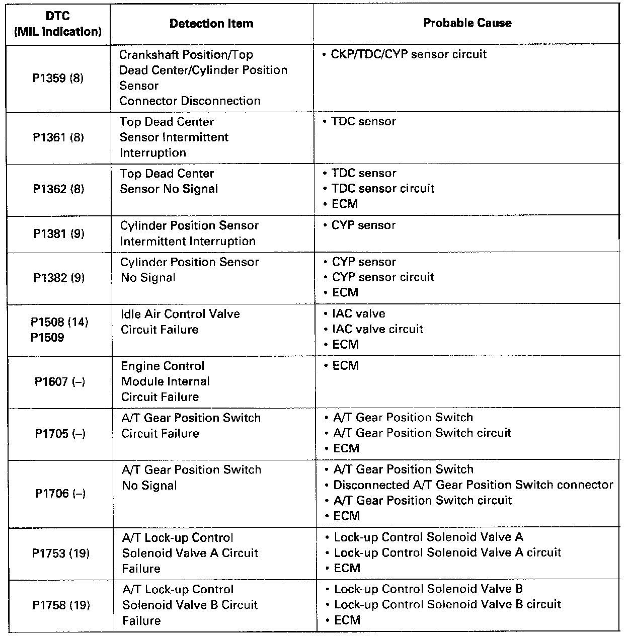 The DTCs in the parenthesis will be indicated by the blinking of the Malfunction Indicator Lamp (MIL) with the SCS service connector connected.