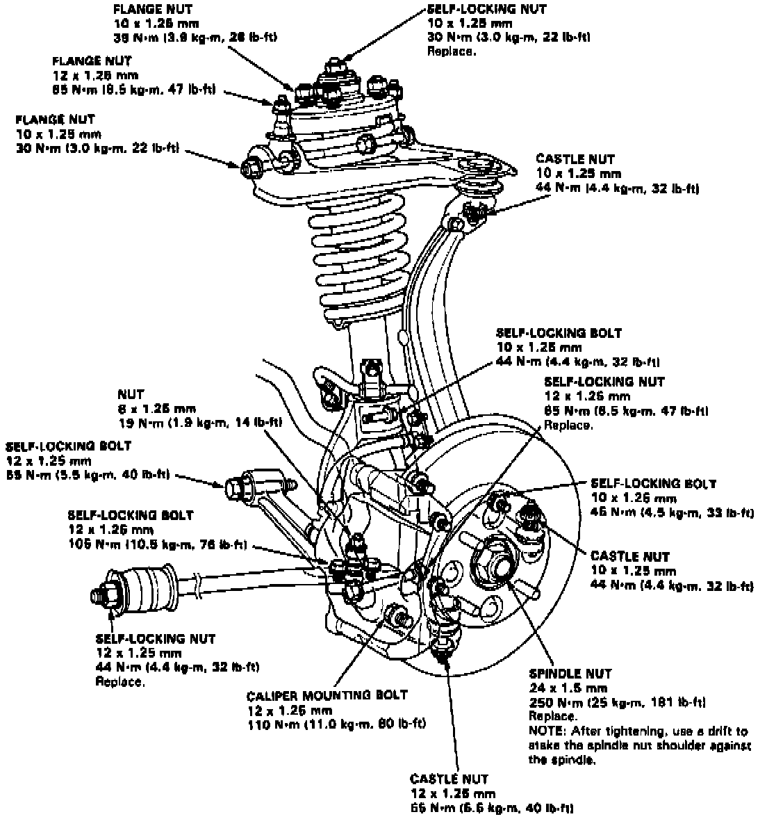 1. Raise and support front of vehicle, then remove front wheels.2. Raise spindle nut locking tab, then remove spindle nut.