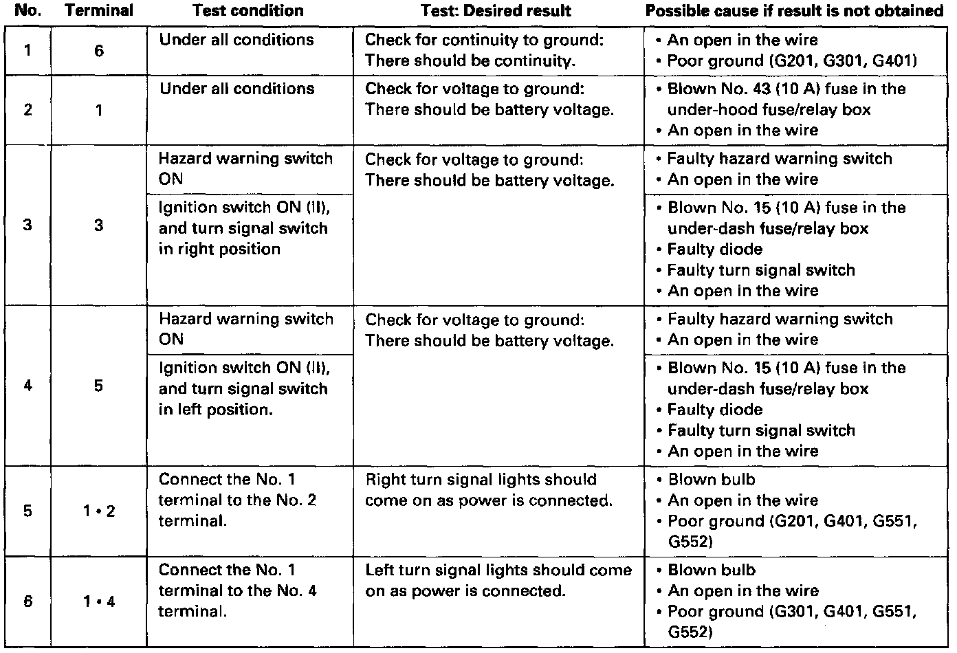 Turn Signal/Hazard Relay Input TestTurn Signal/Hazard Relay Input Test: