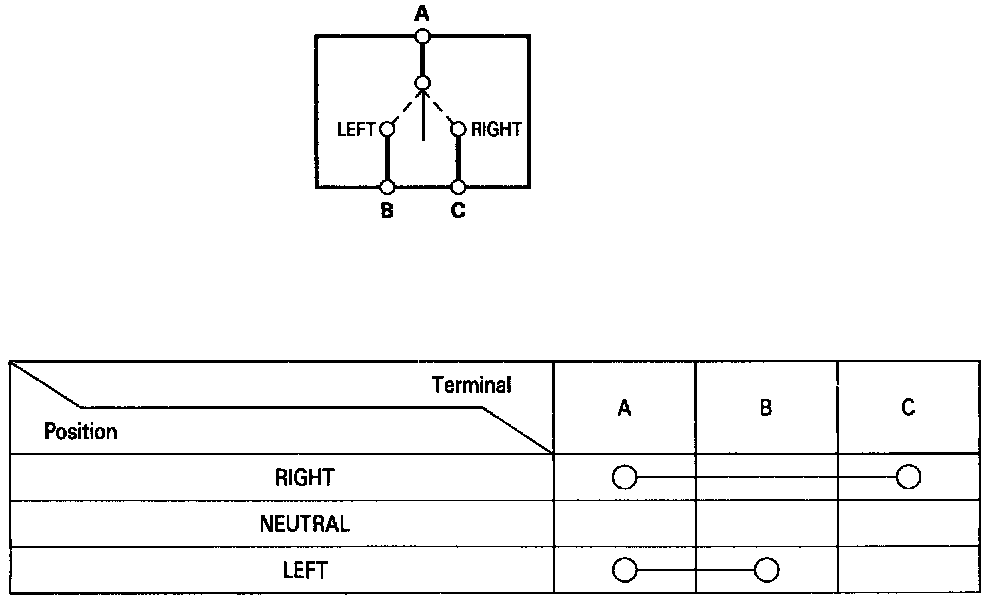 3. Check for continuity between the terminals in each switch position according to the table.