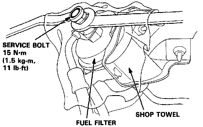 2. Remove the service bolt on the fuel filter while holding the banjo bolt with another wrench. Attach the special tool.