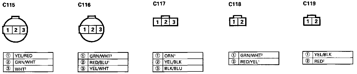 - Different wires with the same color have been given a number suffix to distinguish them (for example, YEL/BLK1 and YEL/BLK2 are not the same).