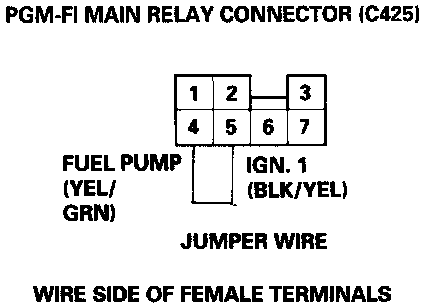4. Connect the PGM-FI main relay 7P connector terminals No. 4 and No. 5 with a jumper wire.