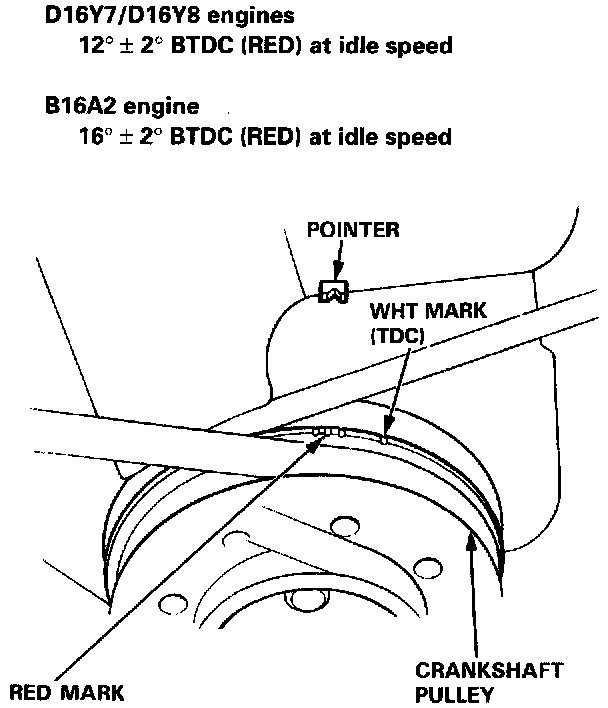Ignition Timing: 12 ± 2 BTDC (RED) at idle speed