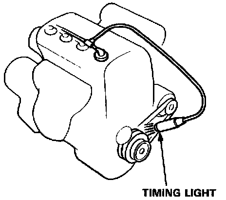 3. Connect a timing light to the No. 1 ignition wire, and point it toward the pointer on the timing belt cover.