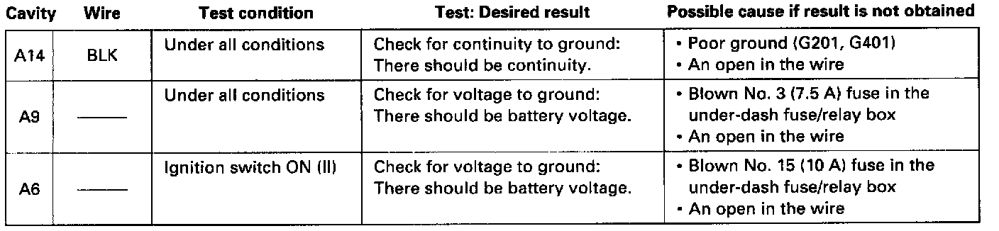 ^ If the terminals look OK, make the following input tests at the connector and socket terminals.