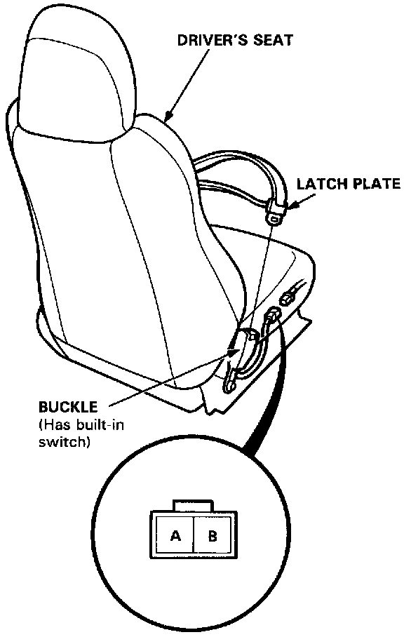 2. There should be continuity between the A and B terminals when the seat belt is unbuckled. There should be no continuity when the seat belt is buckled.