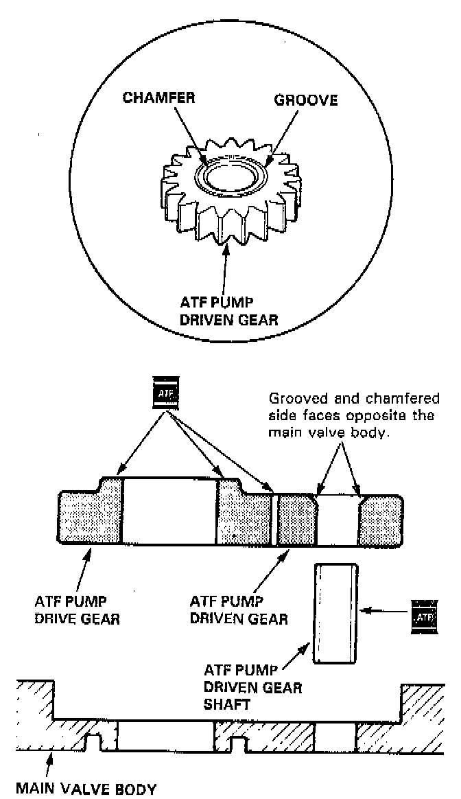 1. Install the ATF pump gears and ATF pump driven gear shaft in the main valve body.