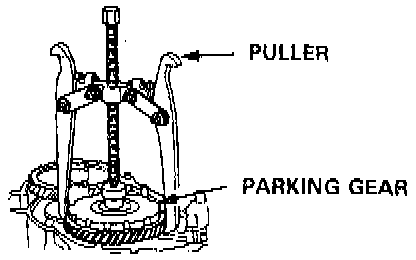 11. Using a puller, remove the parking gear, one-way clutch and countershaft 1st gear assembly.
