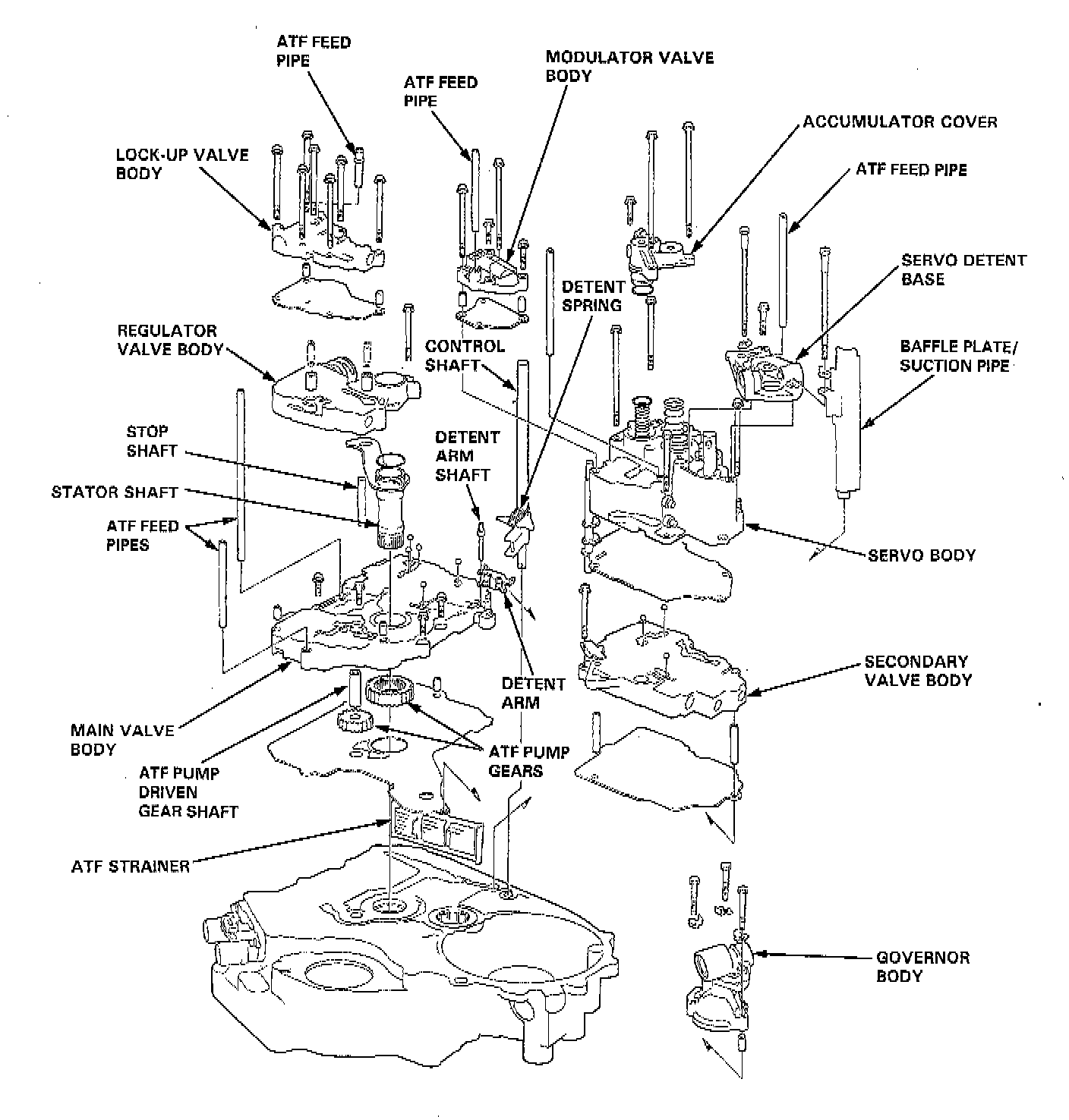 4. Remove the four bolts securing the modulator valve body, then remove the modulator valve body and separator plate.