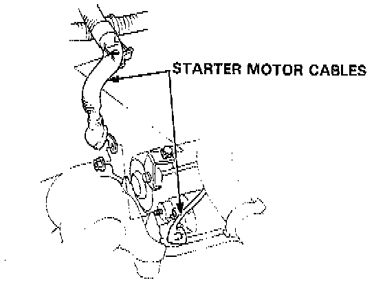 3. Remove the starter motor cables and cable holder from the starter motor.