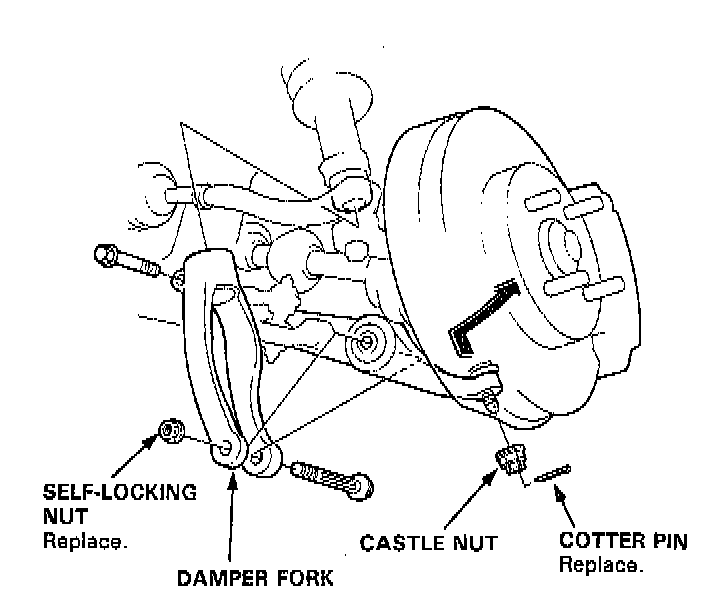 10. Remove the damper fork bolts, then separate the damper forks and lower arms.