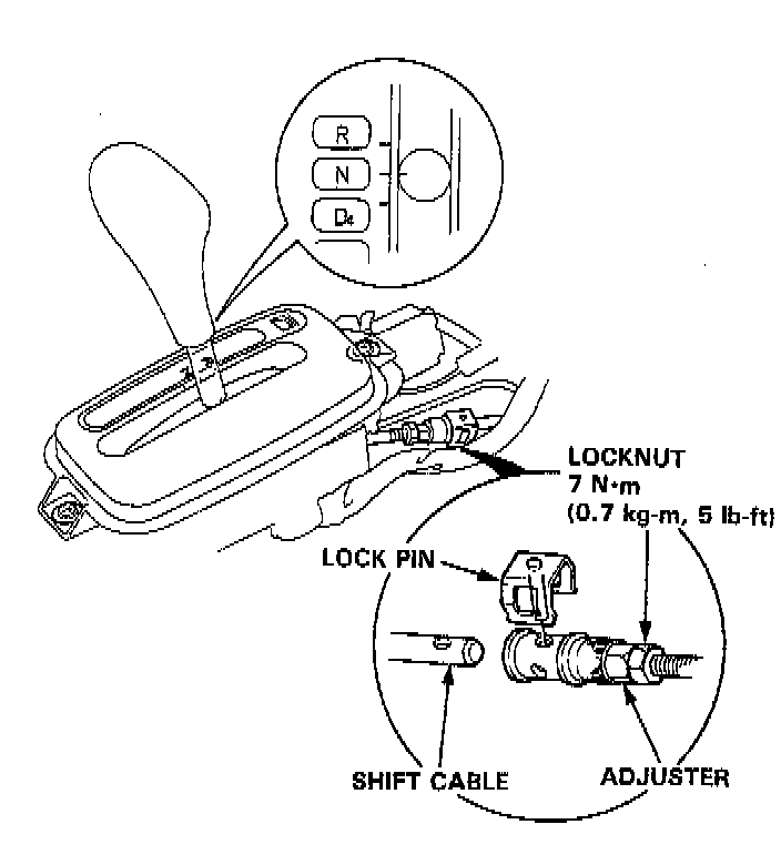 2. Shift to N position, then remove the lock pin from the cable adjuster.