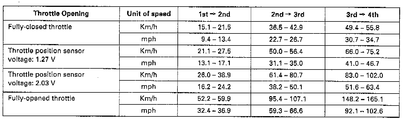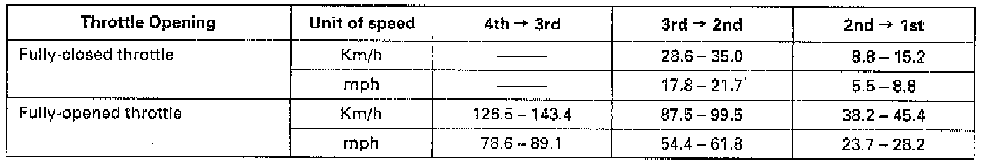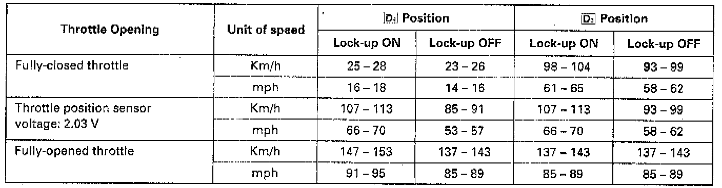 3. Test-drive the car on a flat road in the HI position. Check that the shift points occur at approximate speeds shown. Also check for abnormal noise and clutch slippage.