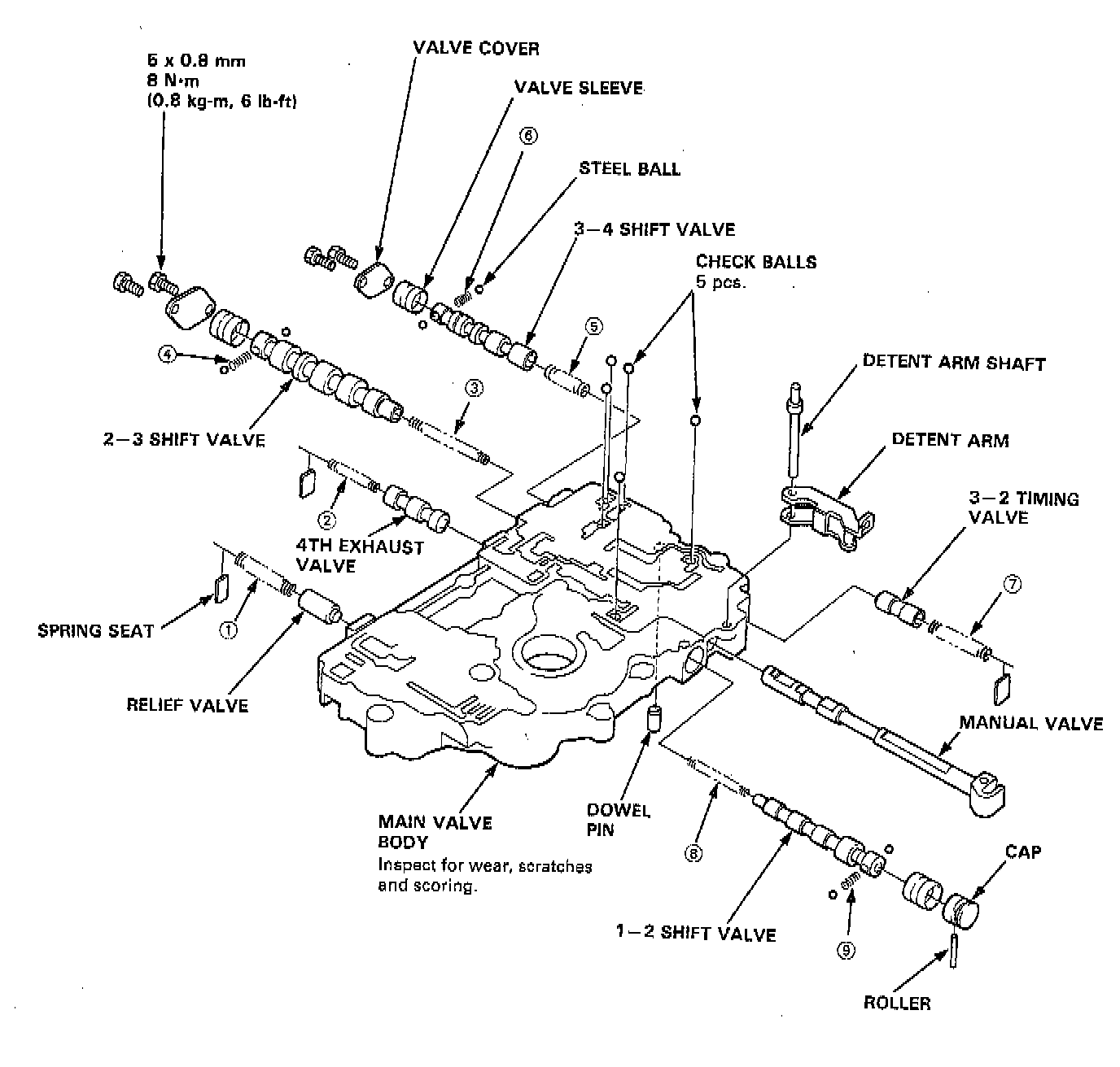 - Check all valves for free movement. If any fail to slide freely, see Valve Body Repair.