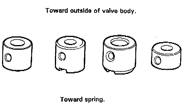 3. Caps with one projected tip and hollow end are installed with the tip toward the spring. The tip is a spring guide.