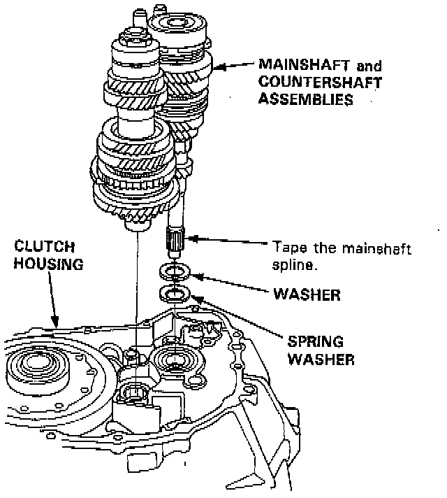 NOTE: Before removing the mainshaft and countershaft assemblies, tape the mainshaft spline to protect it.