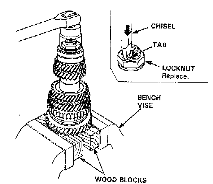 8. Securely clamp the countershaft assembly in a bench vise with wood blocks.
