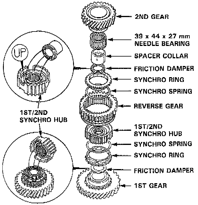 NOTE: Check that the fingers of the friction damper are securely set in the grooves of the 1st/2nd synchro hub.