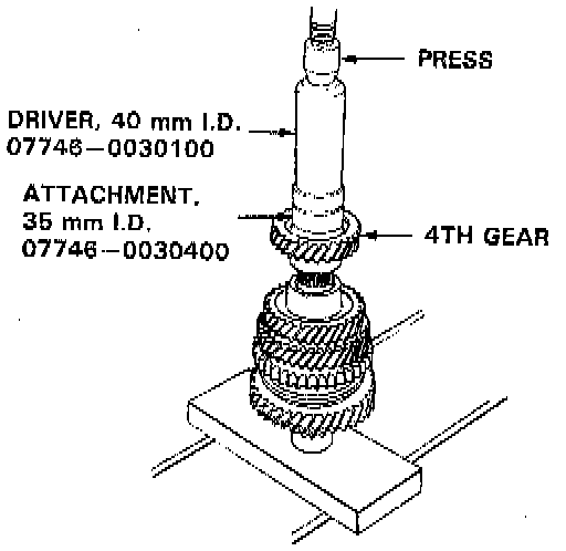 5. Install 4th gear using the special tools and a press as shown.