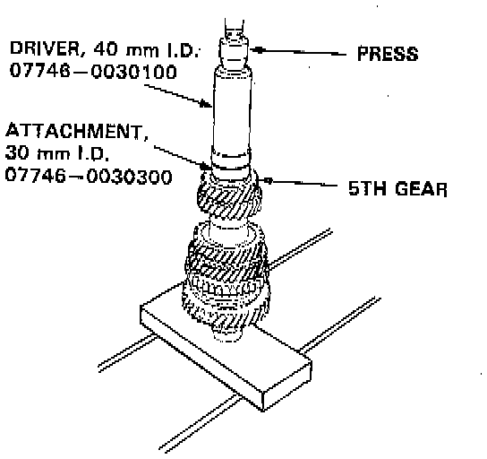 6. Install 5th gear using the special tools and a press as shown.