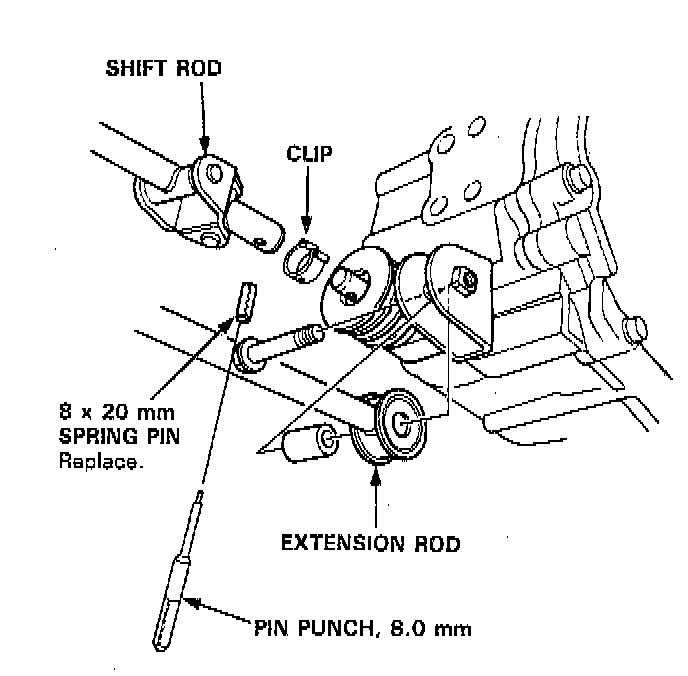 10. Remove the shift rod and extension rod.