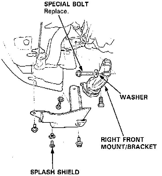 13. Remove the splash shield and right front mount/ bracket.
