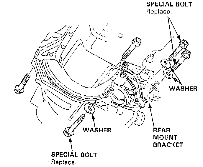 17. Remove the rear mount bracket bolts and transmission mounting bolts.