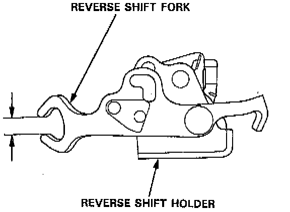 4. If the clearance is more than the service limit, measure the width of the reverse shift fork. Standard: 12.7 - 13.0 mm (0.500 - 0.512 inch)