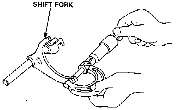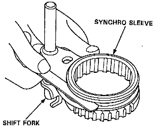 NOTE: The synchro sleeve and the synchro hub should be replaced as a set.1. Measure the clearance between each shift fork and its matching synchro sleeve.