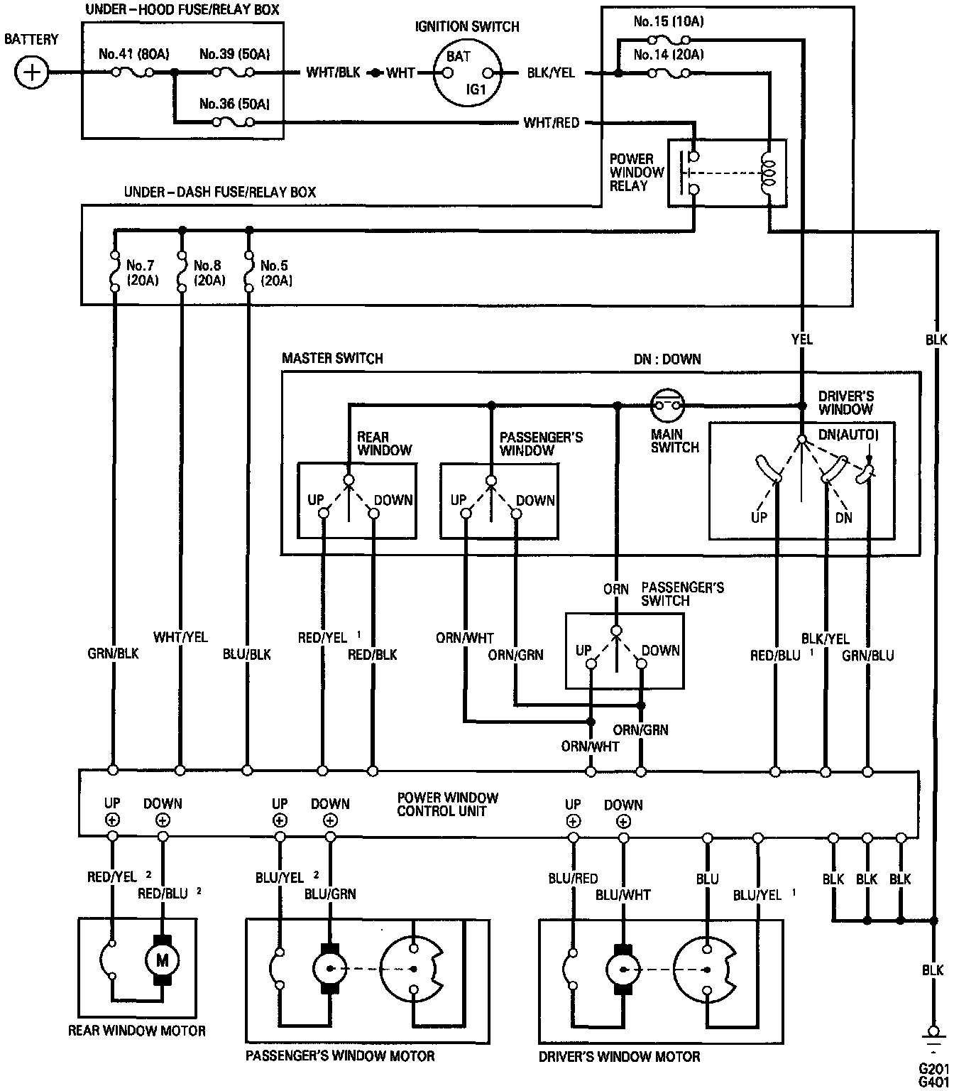 Wires with the same color have been given a number suffix to distinguish them (for example, RED/YEL1 and RED/YEL2 are not the same).