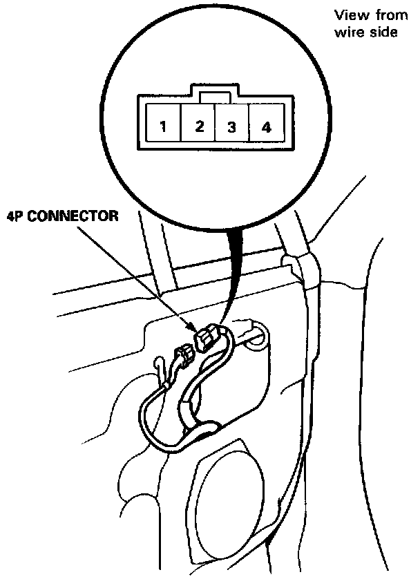 Connect the test leads of an analog ohmmeter to the No. 1 and No. 2 terminals, and check for needle movement while running the motor by connecting battery power to the No. 3 terminal and ground to the No. 4 terminal. The analog ohmmeter needle should move back and forth.