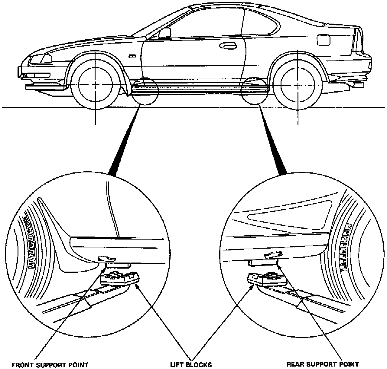 2. Raise the hoist a few inches (centimeters) and rock the car to be sure it is firmly supported.