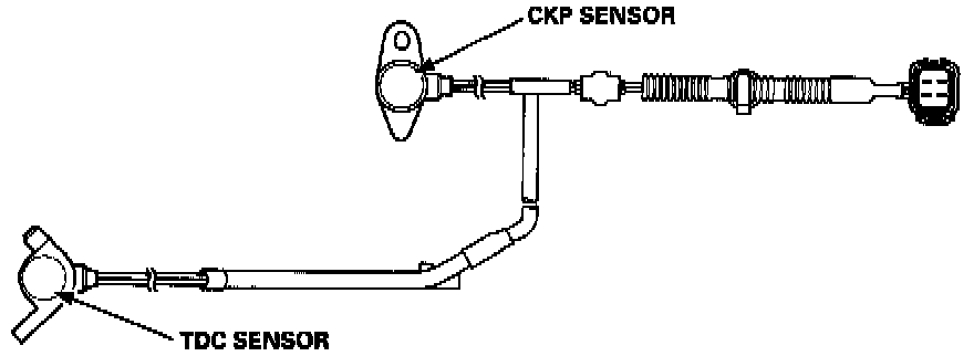 The CKP Sensor determines timing for fuel injection and ignition of each cylinder and also detects engine speed. The TDC Sensor determines ignition timing at start-up (cranking) and when crank angle is abnormal.