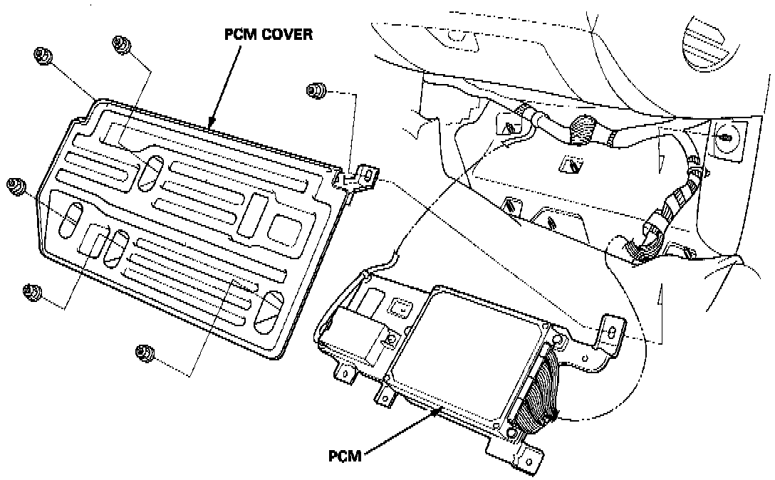 3. Remove the PCM cover mounting nuts, and turn the PCM over.