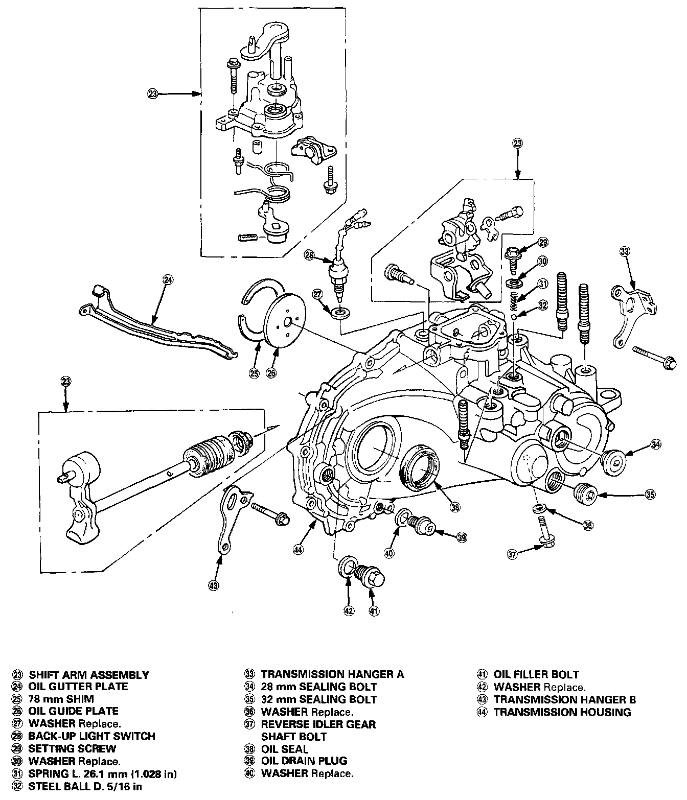 - This transmission uses no gaskets between the major housings; use liquid gasket (P/N 08718-0001)