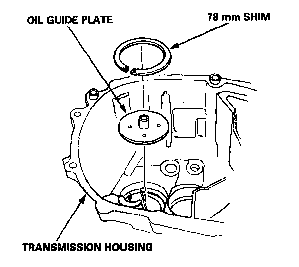 6. Install the oil guide plate and thrust shim into the transmission housing.