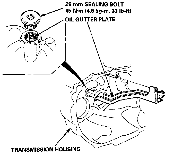 NOTE: Bend the hook of the oil gutter plate into the hole on the transmission housing.