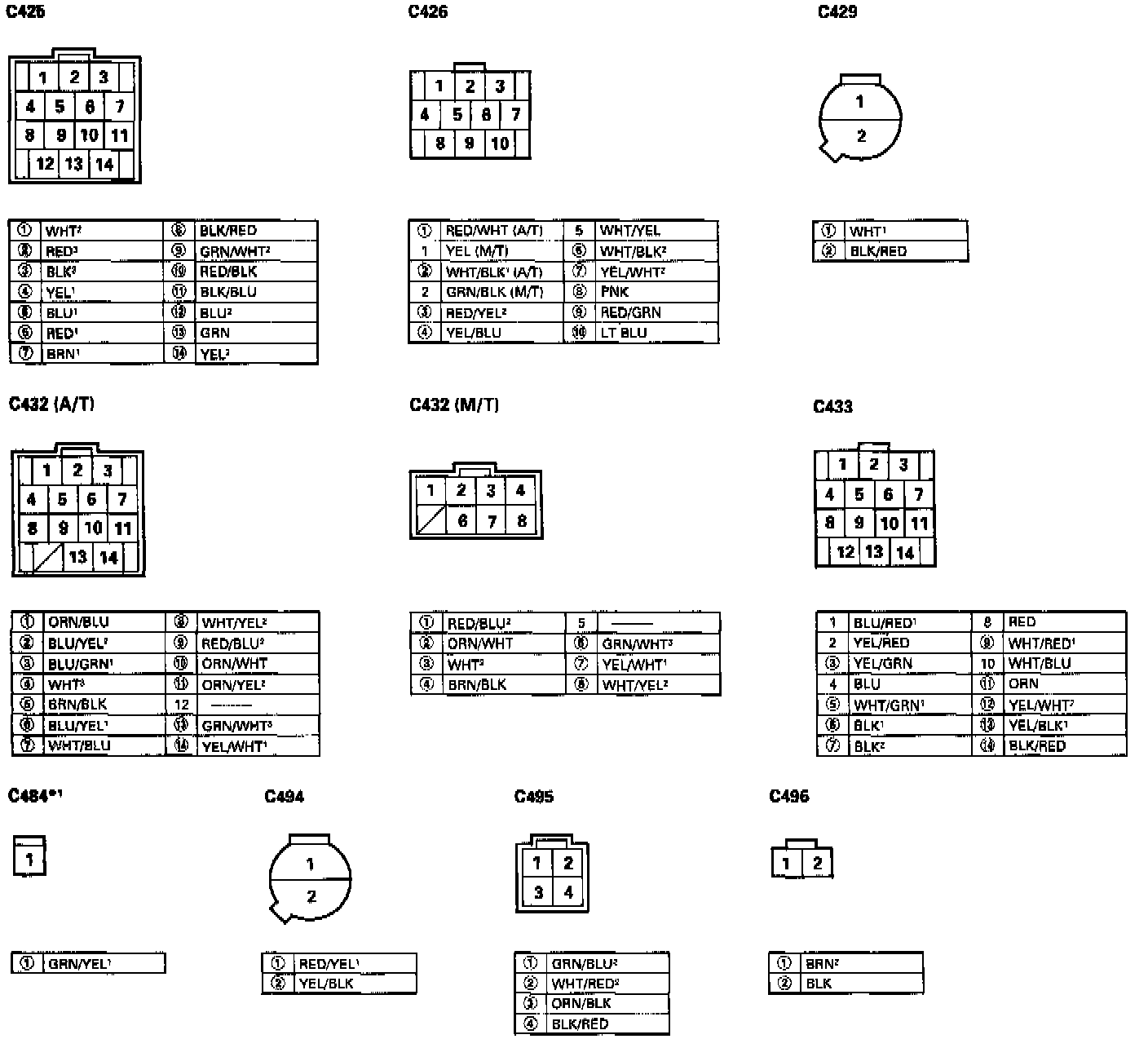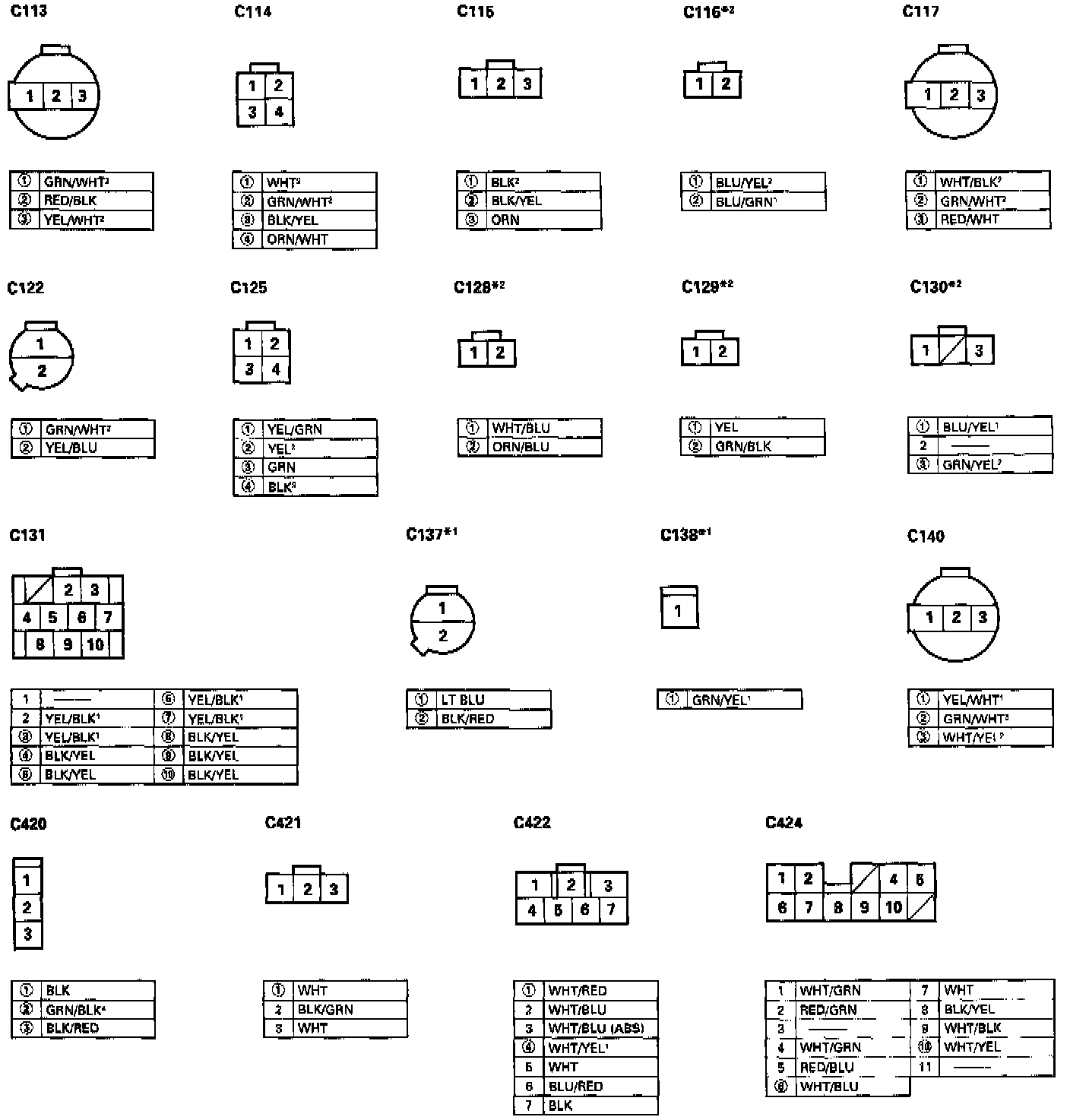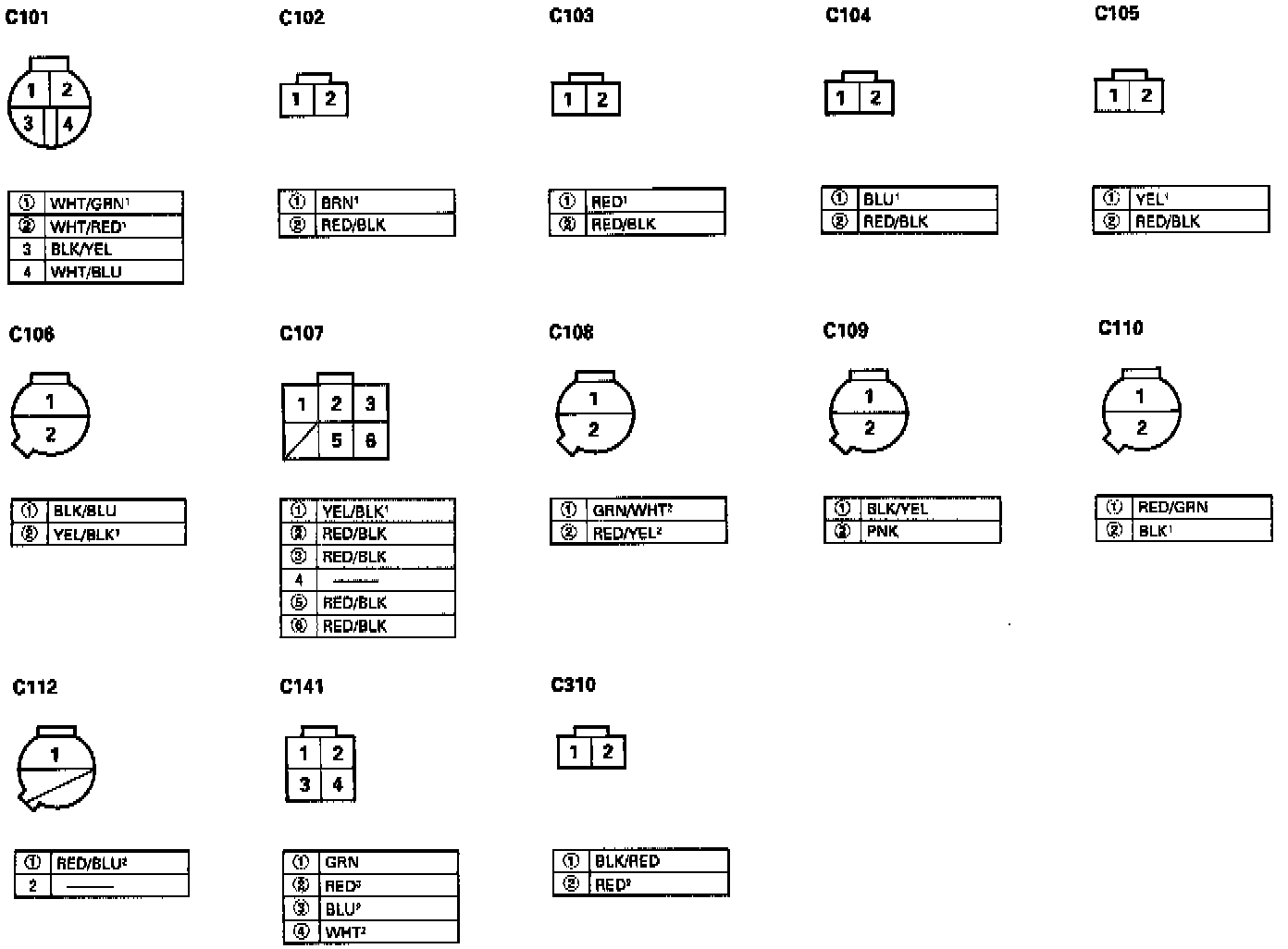- Different wires with the same color have been given a number suffix to distinguish them (for example, YEL/BLK1 and YEL/BLK2 are not the same).