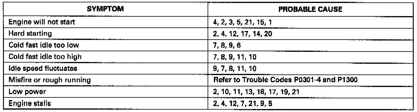 Listed below are symptoms and probable causes for problems that DO NOT cause the Malfunction indicator Lamp (MIL) to come on. If the MIL was reported on, refer to How to Read Diagnostic Trouble Codes. Reading Diagnostic Trouble Codes